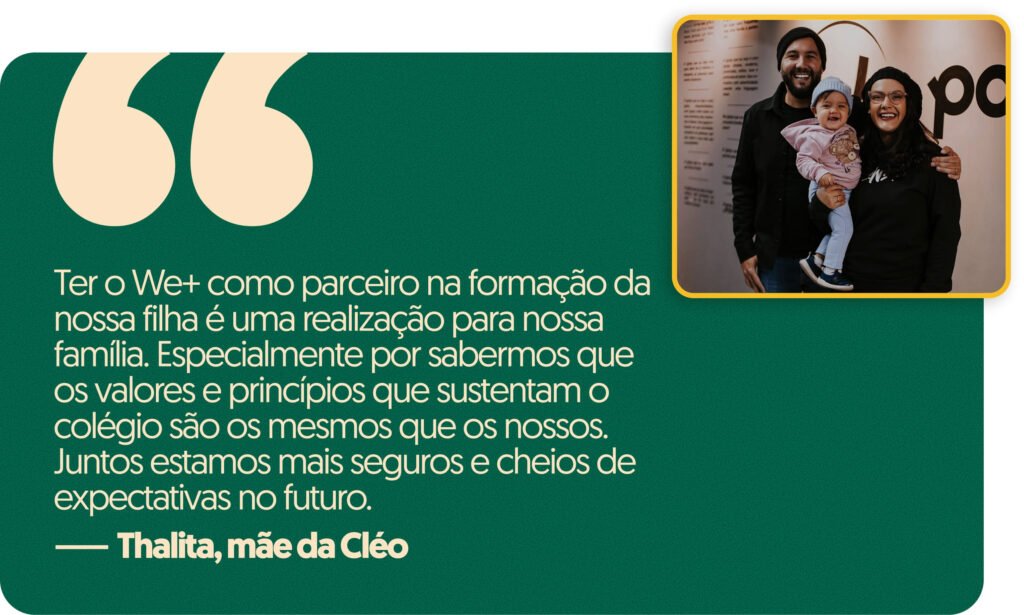 No Colégio WE+, cada criança é valorizada em sua singularidade. Oferecemos um ambiente seguro, moderno e cheio de significado, onde fé, valores e aprendizagem caminham juntos.
